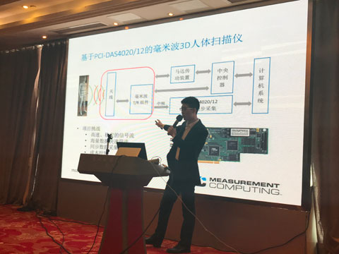 在關于智能檢測與控制的演講中,喬波討論了有關問題及DAQ設備的結構組成,并介紹了易于使用、輕松集成、快速支持的一些MCC數(shù)據(jù)采集產品,包括:基于PC的數(shù)據(jù)采集與控制系統(tǒng)、基于PCI-DAS4020/12的毫米波3D人體掃描儀、基于USB-1608G的圓度測量儀、基于MCC的其他系列產品等。
