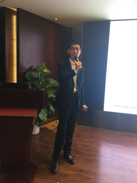 Measurement Computing Corporation(MCC)演講人喬博工程師,在研討會(huì)上從基礎(chǔ)開始給工程師們講解數(shù)據(jù)采集系統(tǒng)的結(jié)構(gòu),著重介紹數(shù)據(jù)采集系統(tǒng)中較容易被忽視的信號(hào)調(diào)理和底層驅(qū)動(dòng)。結(jié)合MCC較新開箱即用軟件DAQami,喬博邀請(qǐng)工程師上臺(tái)演示,通過圖形化的配置界面和拖拽式的直觀組合方式,用時(shí)不到五分鐘,工程師就從零開始搭建起了一套完整的數(shù)據(jù)采集系統(tǒng)。