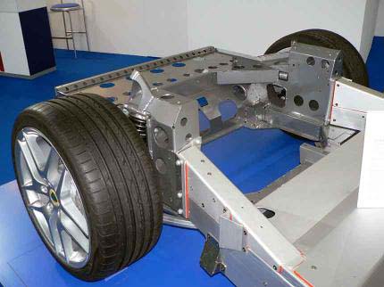 英國蓮花工程公司(Lotus Engineering)在人與車科技展上,展出了英國蓮花汽車(Lotus Cars)生產的4座新款跑車“Evora”的鋁合金底盤,以及兩沖程可變壓縮比發動機“Omnivore”。