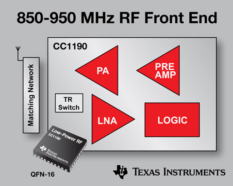 德州儀器面向 850 至 950MHz 頻率范圍低功耗無線應用推出高集成度、低成本射頻(RF)增距器