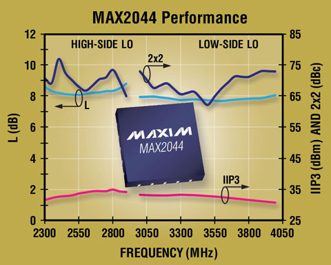 Maxim推出線性度較高的2300MHz至4000MHz、上/下變頻SiGe混頻器