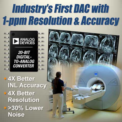 業界較精確的 ADI 公司單片數模轉換器實現了突破性的精度水平,可以為放射科醫生檢查早期疾病提供特別清晰的診斷圖像