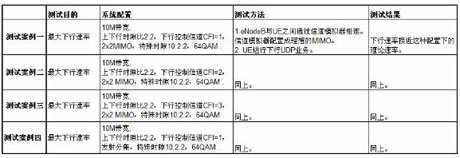 表3-1下行流量在理想信道環(huán)境下的核心測(cè)試案例