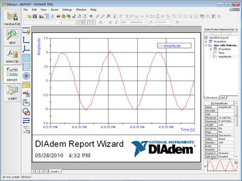 DIAdem 2010作為LabVIEW工具鏈的延伸,和LabVIEW 2010一起提供了數千個分析函數,而且無論使用在線還是離線處理技術,都可以創建直觀的報表。