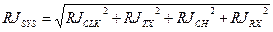 由于隨機抖動是隨機過程產(chǎn)生的結(jié)果,系統(tǒng)總隨機抖動的計算需要進行方和根 (RSS) 計算,如方程式2所示: