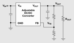 圖 1. 用于調(diào)節(jié)電壓的可調(diào)式 DC/DC 轉(zhuǎn)換器