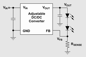 圖 2. 用于調(diào)節(jié) LED 電流的可調(diào)式 DC/DC 轉(zhuǎn)換器