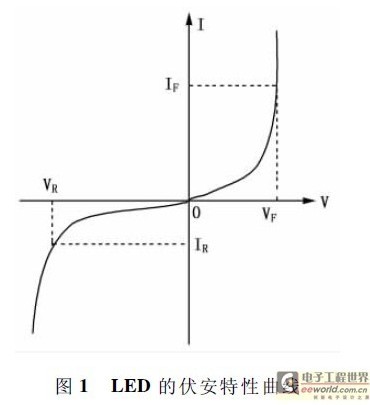 圖1 所示為1W 級大功率LED 芯片在輸入為正向電壓時的伏安特性曲線。