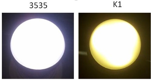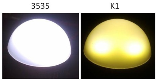 圖三. 3535陶瓷封裝與K1在球泡燈中的暗區比較(1)