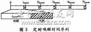 如圖3所示,睡眠定時器以周期tperiod對節點進行喚醒。整個喚醒過程與開關節點相同,其平均功率為: