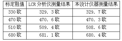 由于人體阻抗在頻率50KHz的阻值在200-800歐之間,因此選取如下表所示的電阻,利用本設計測量電阻值與使用惠普4284A型LCR分析儀測量結果做一個對比: