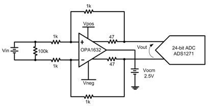 由于運算放大器的 PSRR 進一步降低了電源的微小變化,因此您可能會錯誤地得出如下結論:電源電壓的微小變化在系統中影響極小或者沒有影響。作為一個定量舉例,我們可對一個全差動運算放大器進行分析,其將信號緩沖至一個 24位 ADC。