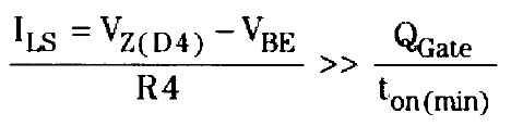 電容C4和二極管D3對驅(qū)動電路的功能至關(guān)重要。通過選擇電阻R5來將12V柵極驅(qū)動電平設(shè)置在整流器輸出電壓以下。二極管D3將電容C4限定在這一電平。特別是,當(dāng)U1的開關(guān)引腳輸出一個低信號來開啟功率FET時,信號被電平位移到Q3的基極。晶體管Q3開啟,并快速地將Q4的柵—源電容CGS充電至 12V。如果沒有C4和D3的話,關(guān)閉Q4會讓Q3成為一種漏極接地的昂貴的高壓雙極型晶體管。當(dāng)U1的開關(guān)引腳輸出一個高信號來關(guān)閉功率FET時,該信號被電平位移至Q2的基極。Q2開啟,有效地將Q4的柵極與輸入電壓連接。在沒有起到本地電源作用的電容C4的情況下,晶體管Q2和Q3無法提供快速(且因此而高效地)上拉或下拉Q4柵極電容所必需的快速電流峰值,注意到這一點很重要。另外,由R4設(shè)定的電平位移器電流ILS必須足夠高,以在ton(min) 期間移動Q4的柵極電荷QGate。也就是說: