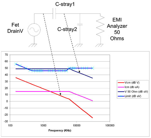 圖 1 僅 100 fF 的開關節點電容卻產生了 EMI 問題