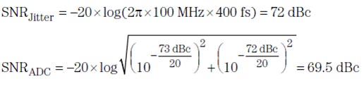 SNRJitter[dBc]=-20×log(2π×fIN×tJitter) (2)