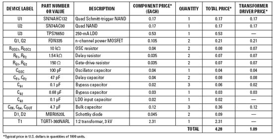 如果應用要求 2 kV 以上的隔離電壓、60% 以上的轉換器效率或者標準組件可靠的有效性,那么分立設計就是一種能夠替代集成組件的低成本方案。分立 DC/DC 轉換器設計的缺點是需要做大量的工作——選擇穩定的振蕩器結構和先斷后通電路,選擇可以通過標準邏輯門有效驅動的MOSFET,適宜實施溫度和長期可靠性測試。所有這些努力都要花費時間和資金。因此,在倉促進行這樣一個計劃以前,設計人員應該考慮到下列事項:集成組件通常已通過溫度測試,并且擁有其他工業資質。這些組件不僅僅是較可靠的解決方案,而且還擁有較快的上市時間。