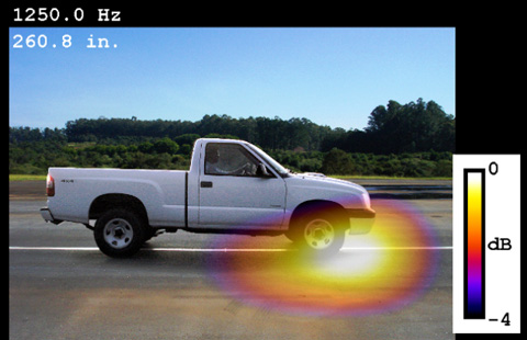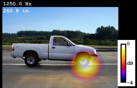 聲學圖像識別70公里時速、1,250 Hz下的輪胎噪聲