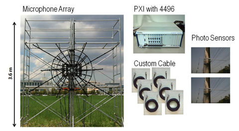 為了進行高速列車的測試,我們設計一套144通道的麥克風陣列來提高聲音圖像的分辨率。我們使用了NI PXI-4496動態信號采集模塊來采集測量信號并使用一種特殊的光電傳感器來輔助ICP/IEPE麥克風,觸發列車位置。在Korail推出高速列車服務之后不久,我們在2006實施了KTX的早期測試,使用了一個48通道的麥克風陣列,成功地在297公里/小時的高速KTX列車上捕捉到了噪聲源。
