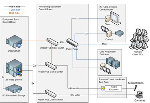 6個或更多的測試觀察者使用LabVIEW圖形用戶界面來觀察測試進程或檢索過去的測試數據。 在任何時候,我們都可以查看測試進程中的實時數據和緩沖的實時數據,或從過去的測試中讀取數據。 DDS包括兩個用于記錄和傳輸視頻通道的專用視頻服務器,以及將模擬音頻轉換成基于IP數據流的編碼器,可實時應用或傳回至MP3格式。 專用服務器,同時也是測試網絡的域控制器,在TDMS文檔中存儲了測試配置和參數數據。