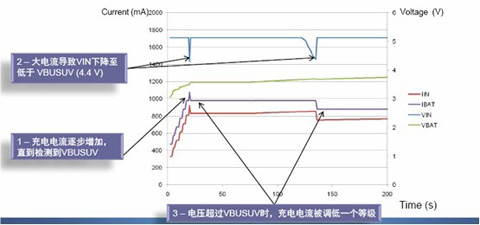 圖1:利用自動輸入限流縮短總體充電時間