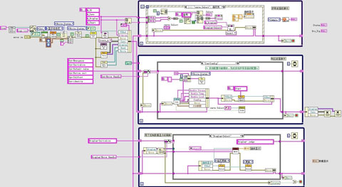 軟件編寫中,充分利用了LabVIEW 2011 軟件開發平臺的并行處理特長,令以下三個循環同時運行: