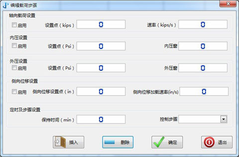 其后開始試驗參數配置。配置過程包括輸入試樣信息、傳感器配置、載荷步驟設置(如圖5)、應變與熱電偶采集配置等。每完成一步配置,點擊下一步,直到配置完成。這種鎖定的順序過程可以避免因某步信息未輸入而默認使用上次試驗配置的情況。