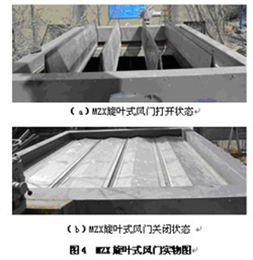 MZX型旋葉式風門由電動執行機構提供動力,扇葉均勻地布置在框體內,每一片扇葉都有配套的傳動構件相連接,電動執行器工作帶動傳動構件中的齒輪齒條進行同步運動,從而通過扇葉的同步轉動實現風門的啟閉,其現場工作狀態如圖4所示。