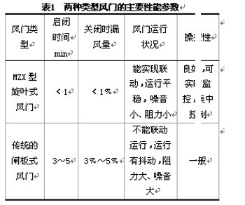 從表1可以清楚地看出,MZX旋葉式風門的各項主要性能參數均優于傳統的閘板式風門,在實際應用中的效果更好。