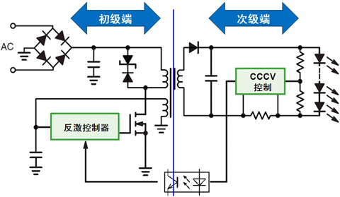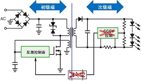 這種經典方案的優勢與缺點并存。例如,它可以輕易地實現高精度的穩流,且能夠在寬工作范圍及制造差異條件下可靠地工作。但這種方案的次級端控制電路消耗電能,由于此電能未轉化為光,故降低了能效。此外,次級端的元器件在印制電路板上占用空間并增加成本。較后,如果次級端任何元件有故障,仍須把驅動器設計成就算有故障也保安全。