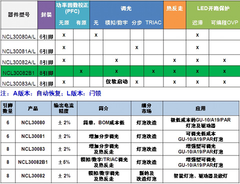 這些器件中,NCL30080是簡單及低BOM成本版本,NCL30081則增加了5步準對數調光功能。NCL30082具備熱反走/過壓保護及模擬/數字調光功能,還增加了5步準對數調光及軟啟動功能。