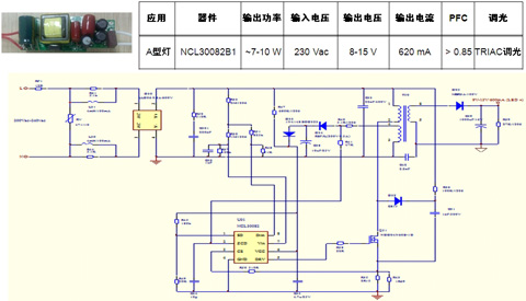1) 基于NCL30082B1的初級端反饋、高功率因數、TRIAC可調光A型燈LED驅動器設計