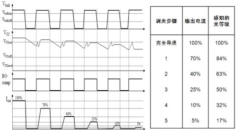 圖4:NCL30081和NCL30083增加了5步準對數調光功能。