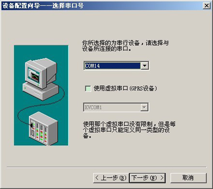 在“選定通訊鏈路”屬性頁中,勾選要連接通訊的通訊鏈路并設(shè)置從站號(hào)及串口號(hào)。從站號(hào)及串口號(hào)的設(shè)置要與組態(tài)軟件中的設(shè)置一致,本例子為COM14.然后單擊“下一步”,進(jìn)入“設(shè)置串口參數(shù)”屬性頁中設(shè)置串口參數(shù)。
