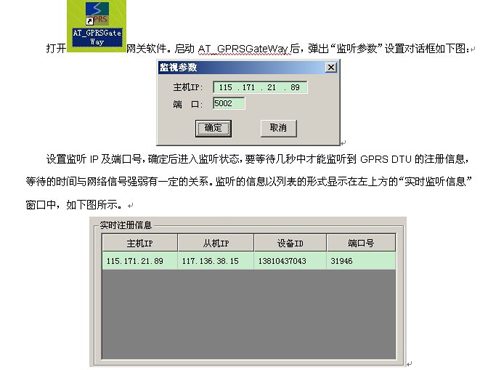 通訊鏈路:一條監(jiān)聽到的GPRS DTU的注冊(cè)信息:主機(jī)IP、從機(jī)IP、設(shè)備ID和對(duì)應(yīng)設(shè)置的從站號(hào)與串口號(hào),我們稱之為一條通訊鏈路,以后若無特殊說明,通訊鏈路的含義均是如此。