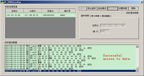 注意:點(diǎn)擊“啟動(dòng)通訊”后要立即轉(zhuǎn)到組態(tài)軟件,進(jìn)入運(yùn)行系統(tǒng)打開要監(jiān)視的畫面,或者先啟動(dòng)組態(tài)軟件,進(jìn)入運(yùn)行系統(tǒng)打開要監(jiān)視的畫面,再轉(zhuǎn)到AT_GPRSGateWay,點(diǎn)擊“啟動(dòng)通訊”進(jìn)入通訊狀態(tài)。這個(gè)過程中,可能要花費(fèi)幾秒鐘的時(shí)間,以致進(jìn)入通訊等待狀態(tài),直到檢測(cè)到串口有數(shù)據(jù)時(shí)才進(jìn)入通訊狀態(tài)或者串口讀取數(shù)據(jù)超時(shí)。
