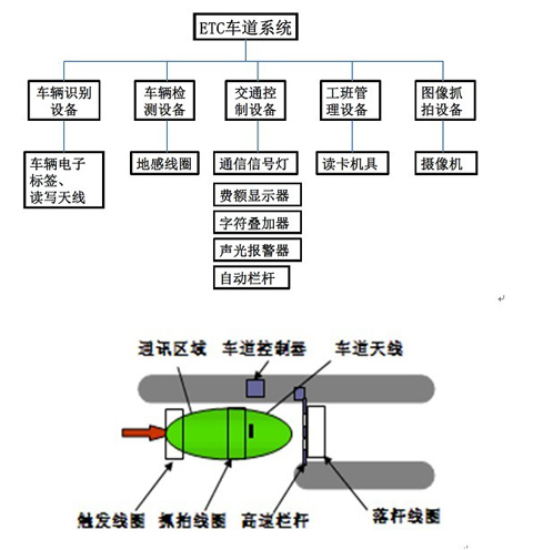 ETC車道主要組成設(shè)備有:路側(cè)讀寫控制器(RSU)、車載機(OBU)、通行信號燈、報警器、字符疊加器、費額顯示器、自動欄桿機、車道計算機(含顯示器、鍵盤、主機)、車道控制器、雨棚信號燈、車輛檢測器、地感線圈、攝像機,讀卡機具等。