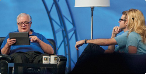 圖2:2012年NIWeek上,LabVIEW之父Jeff Kodosky在平板電腦上演示未來基于觸控的LabVIEW編程方式