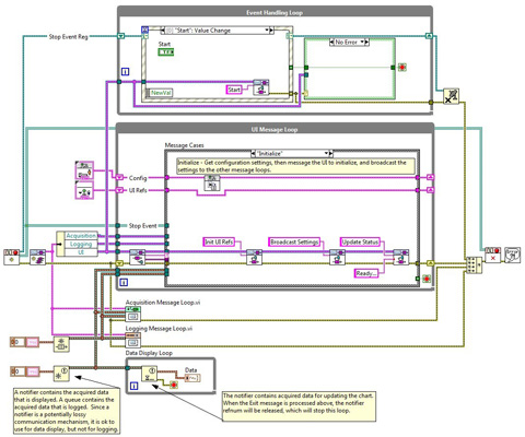 許多新LabVIEW用戶都會把程序框圖編寫得非常繁瑣龐大。對于一些復雜的應用程序,我們難免需要編寫較大的程序框圖,但龐大的程序框圖從一定程度上也可以表明該程序缺乏編程架構。如果沒有一個基本的架構,要長期維護該程序是非常困難的,而且如果以后要添加新功能也會非常困難。正如只有一個好的框架才能建造一棟結構合理的房子,一個好的編程架構可以為您構建應用程序提供了一個安全可靠的框架。
