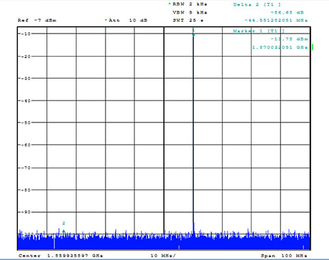 3GPP 要求, 調制載波頻率在一個子幀周期 (1ms) 內觀察到的頻率偏差不得超過+/-0.05ppm在 TD-LTE 發射機系統中,由于基帶系統是完全同步的,沒有長期頻率誤差,所以其頻率誤差主要來之于時鐘和頻綜的貢獻。