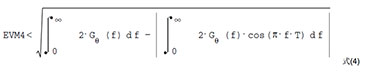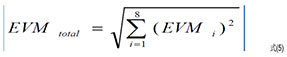 除以上主要影響,通道濾波器的幅頻特性失真,通道濾波器的非線性相位失真,鏈路的非線性失真都會影響發射機的 EVM, 式(5)給出了鏈路總 EVM 的計算式
