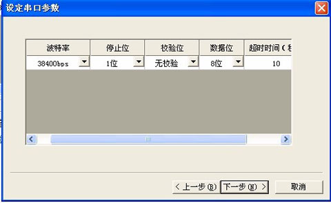 單擊“下一步”,進(jìn)入“設(shè)置串口參數(shù)”屬性頁(yè)中設(shè)置串口參數(shù)。