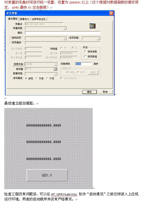 本文檔用于和利時(shí)Hollyview組態(tài)軟件通過(guò)AT_GPRSGetWay工具和LE5404GPRS擴(kuò)展模塊讀寫(xiě)LE系列PLC主控的各種寄存器的數(shù)據(jù); 同時(shí)也可用于其他組態(tài)軟件(無(wú)需具備LE5404GPRS驅(qū)動(dòng))和LE系列主控的無(wú)線通訊。