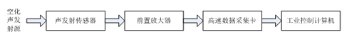 本文擬以LabVIEW 軟件為開發平臺設計出一套集聲發射信號采集與數據處理于一體的、專門服務于水輪機空化狀態監測的自動化系統。聲發射傳感器收集到的聲發射信號前置放大器調理后經高速數據采集卡進入現場工控機系統。在LabVIEW 平臺下實現水輪機空化狀態聲發射信號的數據采集、信號處理、狀態顯示等功能。整個系統的工作原理如圖1所示。