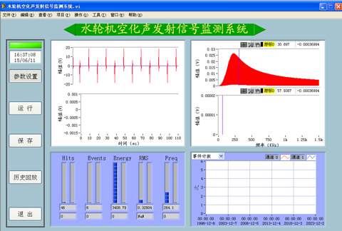 本文基于LabVIEW開發出的水輪機空化聲發射信號監測系統軟件主界面如圖4所示。