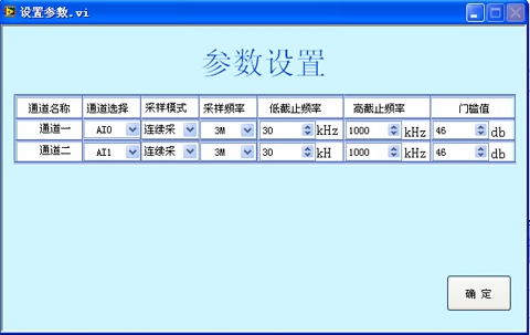 該模塊使用了LabVIEW的NI Measurements模板中DAQmx 模塊的各函數,根據不同需要可進行采集通道、采樣模式、采樣頻率、采樣頻段范圍、門檻值等設置。如圖5所示。