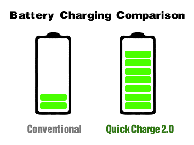 Quick charger2.0快充:同樣采用switching charge的形式,但相比較V1.0的快充,V2.0可以提供5V,9V和12V三種輸出電壓。而V1.0的快充只能輸出5V的電壓,因此充電速度受到充電電壓的限制?斐2.0通過同時提供充電電壓和電流,雙向的加快了充電的速度,成為未來手機快速充電的新趨勢。