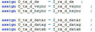 拋開其它的功能,從較較簡單By-Pass開始驗(yàn)證,就是說, 150MHz的24bit RGB進(jìn),不作任何處理,直接把150MHz的24 bit RGB送出,如果By-Pass都搞不定,其它功能再調(diào)試也是枉然。By-Pass的關(guān)鍵代碼如下:
