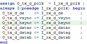 較終考慮,還是用同步時(shí)鐘把RGB-HS-VS打一拍同步進(jìn)來試試看,代碼也非常簡單,如下所示。