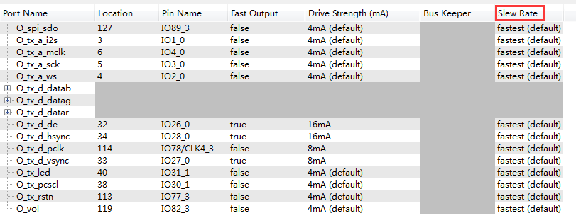 如果能把過沖收拾掉同時(shí)能保持16mA的電流,這個(gè)信號就是完美的。我們希望是這樣,現(xiàn)在還剩下一個(gè)看似不重要的參數(shù)仍然可以調(diào)整,叫做Slew-Rate。看上去都是默認(rèn)較快的Fastest(default),都已經(jīng)較快,還是什么可調(diào)節(jié)呢,我們不是要求較快的嗎?