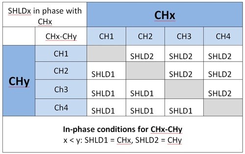 例如,如果FDC1004被配置為CH1-CH4的方式,CH1將在相位內并與SHLD1配對,而CH4將在相位內并與SHLD2配對。